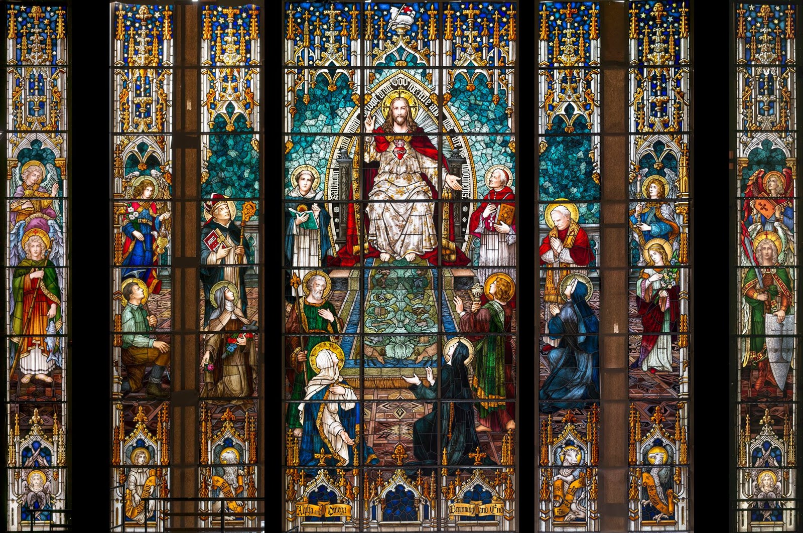 The cover of the July 2015 issue of the Adoremus Bulletin features a picture of the stained glass window above the Altar and behind the Rood, with this commentary by Bishop Conley: